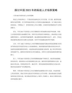 探讨中国2023年的科技人才培养策略探讨中国2023年的科技人才培养策略探讨中国2023年的科技人才培养策略
